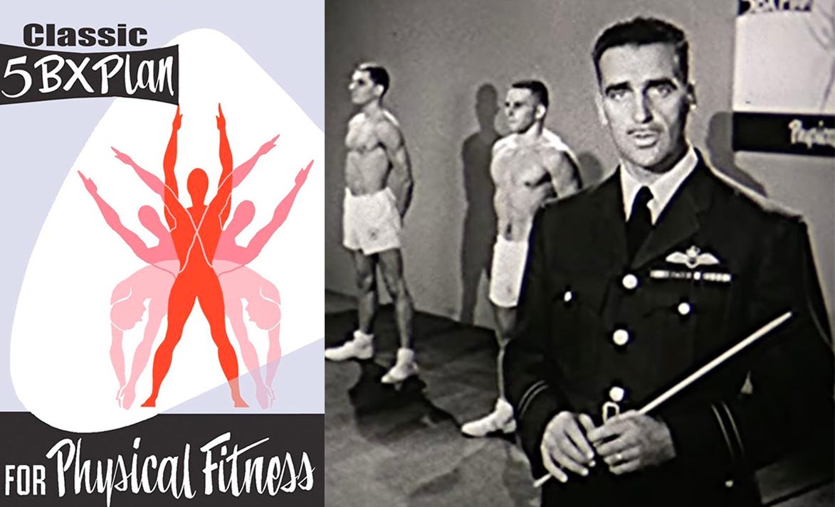 The “5BX” (Five Basic Exercises) plan is a fitness regimen developed in the 1950s by Dr Bill Orban for the Royal Canadian Air Force (RCAF). At that time, approximately one-third of RCAF pilots were deemed unfit to fly, necessitating a practical solution to enhance their fitness.