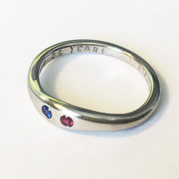 There’s also a modern list (especially popular in the United States), which swaps in more contemporary or practical items. For example: clocks instead of paper for the 1st, and watches instead of crystal for the 15th. Back in 2000, the Chicago Public Library compiled a list that even had some fill-ins for those later anniversaries. “Improved real estate” for the 42nd and “Groceries” for the 44th? [Ed: No thanks.]