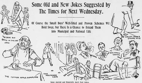 “The first of April some do say, Was set apart for All Fools’ Day: But why the people call it so, Nor I nor they themselves do know,” begins an article in the San Francisco Call from 1 April 1900, discussing the history and customs of “April Fools’ Day”.