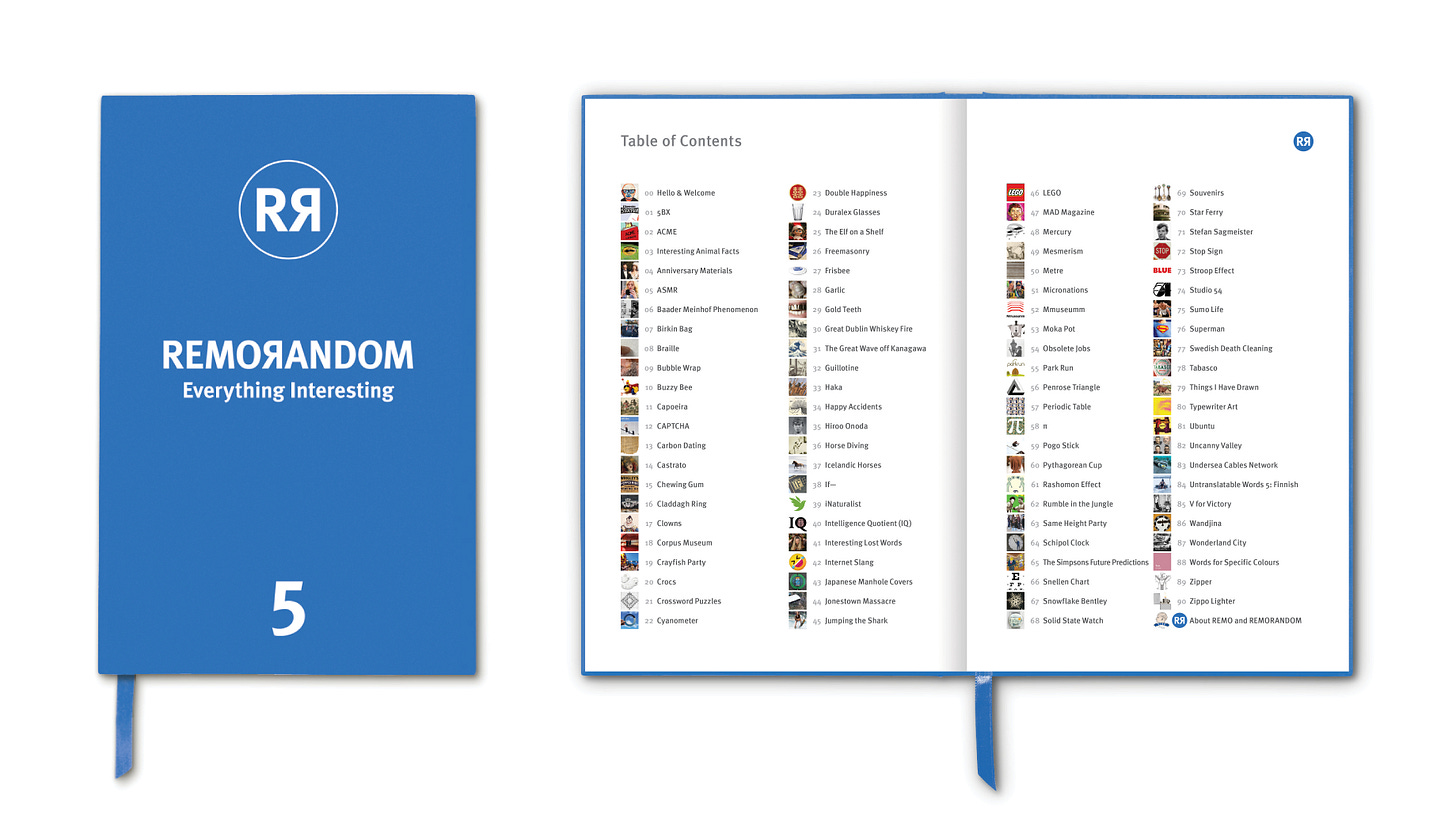 REMORANDOM was launched in October 2023 as a biannual printed book series featuring a random curation of snack-sized stories, ideas and observations guaranteed to inform, entertain and inspire a global community of curious readers. Everything interesting. Each numbered issue of REMORANDOM serves both subscribers and casual readers with an eclectic mix, drawing on a wide range of topics: culture, design, history, ideas, nature, people, science and things.