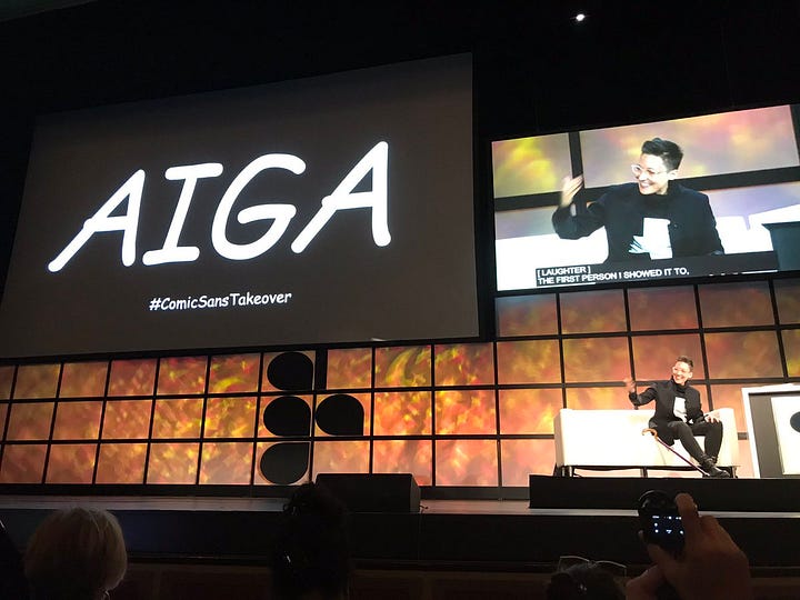 Liz Jackson, founder of disability-led design organisation The Disabled List is an unapologetic humourist about it all. In May 2019 she led #ComicSansTakeover at the AIGA Conference, a response to brands’ tendencies to take themselves way too seriously, especially in terms of disability design. It was a way to take back the meme and redeem the font.