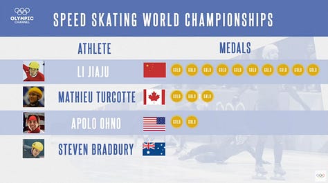 Steven Bradbury is an Australian former short track speed skater and four-time Olympian. He famously won the 1,000m event at the 2002 Winter Olympics in Salt Lake City after all of his opponents were involved in a last-corner pile-up. The delighted-and-yet-slightly embarrassed look on his face as he skated past all of those crashing bodies, arms and legs has become part of the visual history of the Olympic Games. He was the first athlete from Australia and also the Southern Hemisphere to win a Winter Olympic gold medal.