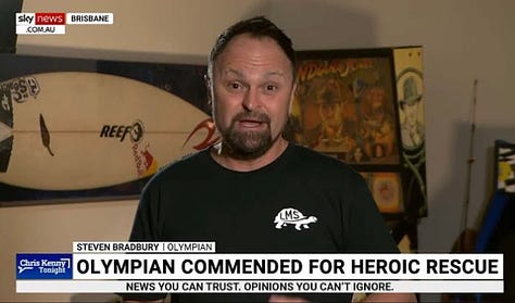 In 2023 Bradbury was awarded a different type of medal, having rescued four teenage girls from treacherous surf conditions at Kings Beach on the Sunshine Coast. The Australian Governor General recognised Bradbury’s heroic efforts, alongside four other courageous Queenslanders, for their selfless acts of bravery.