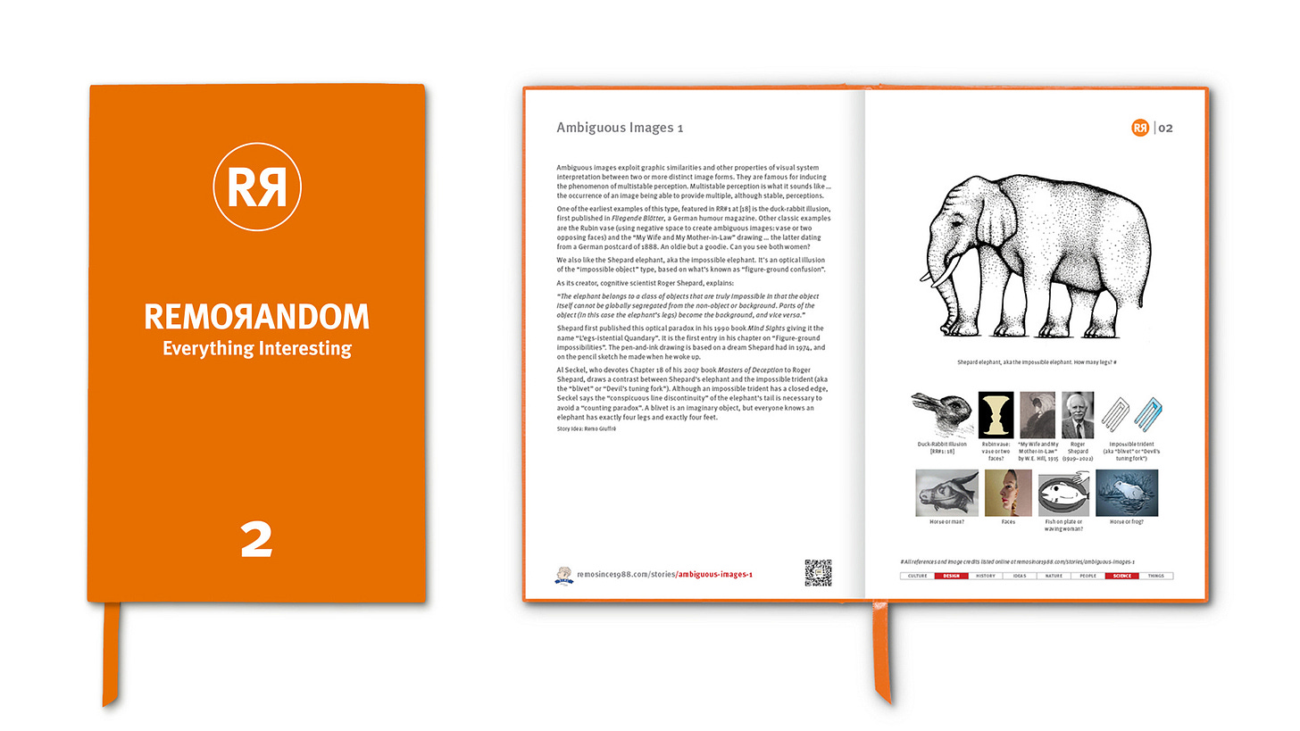 One of the earliest examples of this type is the duck-rabbit illusion, a famous ambiguous image in which a rabbit or a duck can be seen.