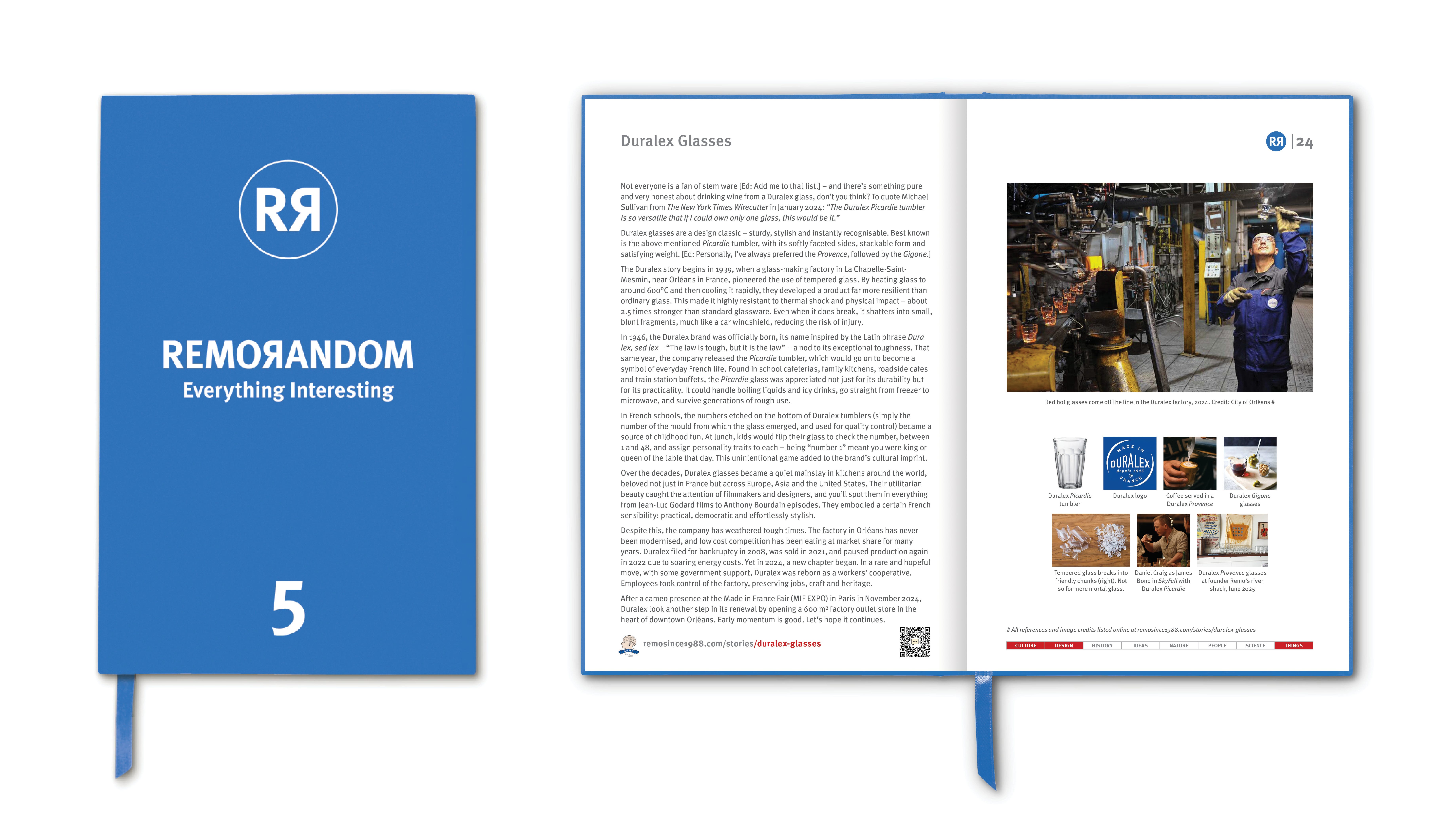 Despite this, the company has weathered tough times. The factory in Orléans has never been modernised, and low cost competition has been eating at market share for many years. Duralex filed for bankruptcy in 2008, was sold in 2021, and paused production again in 2022 due to soaring energy costs. Yet in 2024, a new chapter began. In a rare and hopeful move, with some government support, Duralex was reborn as a workers’ cooperative. Employees took control of the factory, preserving jobs, craft and heritage.