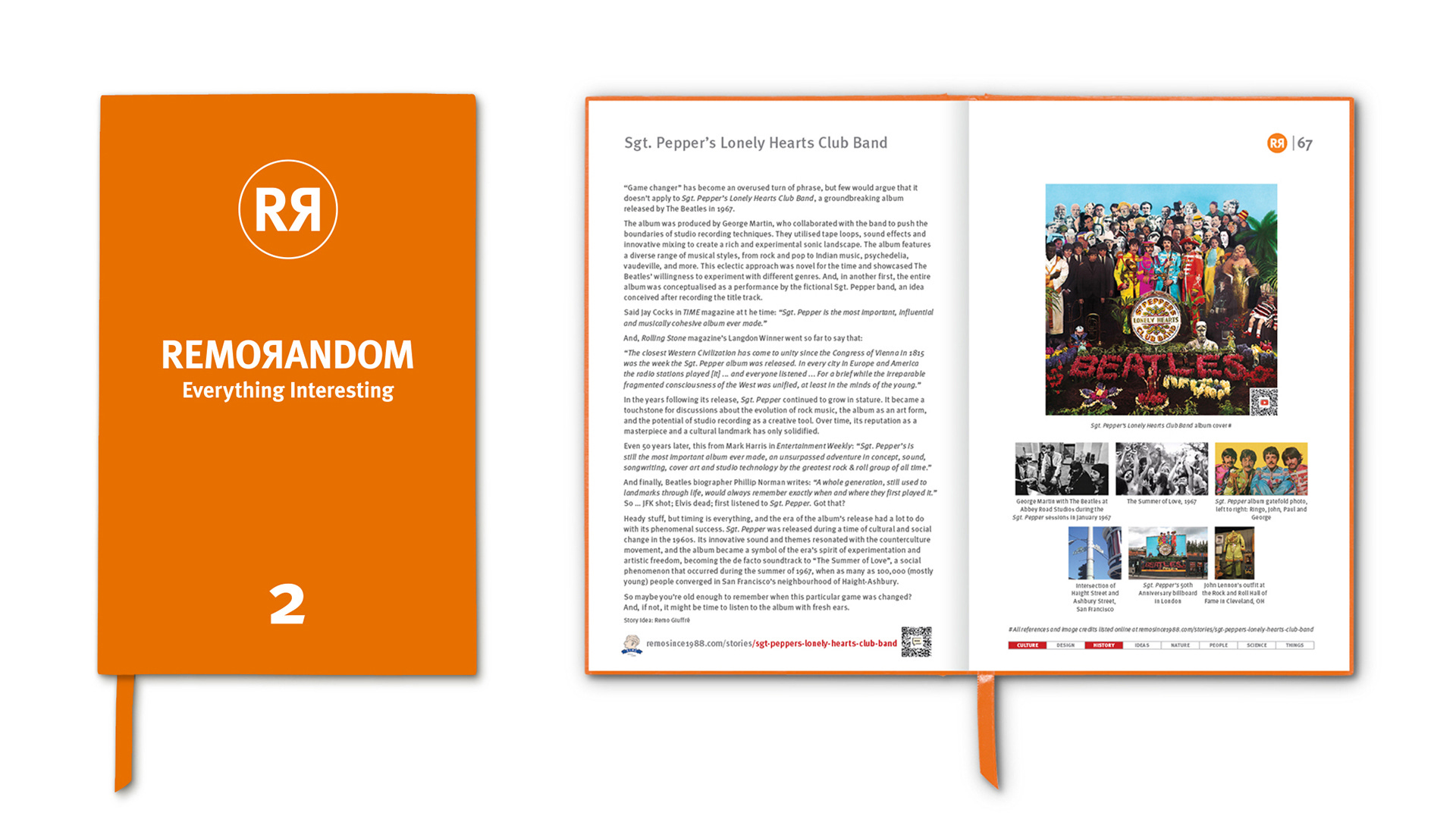 Game changer has become an overused turn of phrase, but few would argue that it doesn’t apply to Sgt. Pepper’s Lonely Hearts Club Band, a groundbreaking album released by The Beatles in 1967. 📍 A charm of finches, a business of ferrets, a paddling of ducks, a kindle of kittens, and yes, even a barrel of monkeys. These collective words are called “nouns of assembly”, and we’ll explore their origin. 📍 The idea that no two snowflakes are alike is technically true. Wilson Snowflake Bentley was a Vermont farmer who became the first person to photograph individual snowflakes using a microscope. Bentley spent his life capturing more than 5,000 snowflake images. We’ll tell you his story. 📍 And finally, in this episode of REMORANDOM, the Met Gala is an annual fundraising event for the Metropolitan Museum of Arts Costume Institute in New York City, and it’s become one of the most celebrated events in the fashion world. Why is that?
