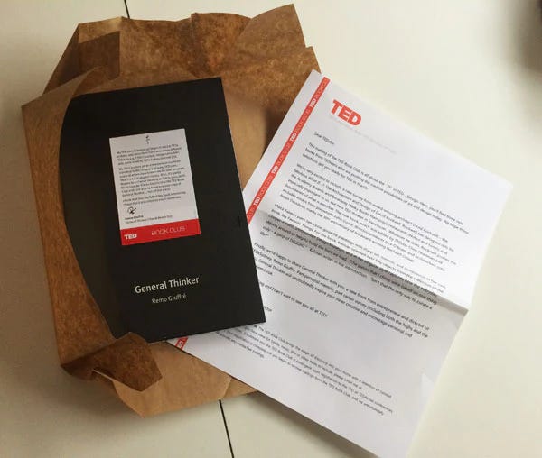 General Thinker was also selected for distribution to TED Book Club members in 2015; so I know that it’s sitting in the bookshelves of around 1,300 people who were at the top of the biz/tech/culture pyramid about 10 years ago. Hello Jeff Bezos :)