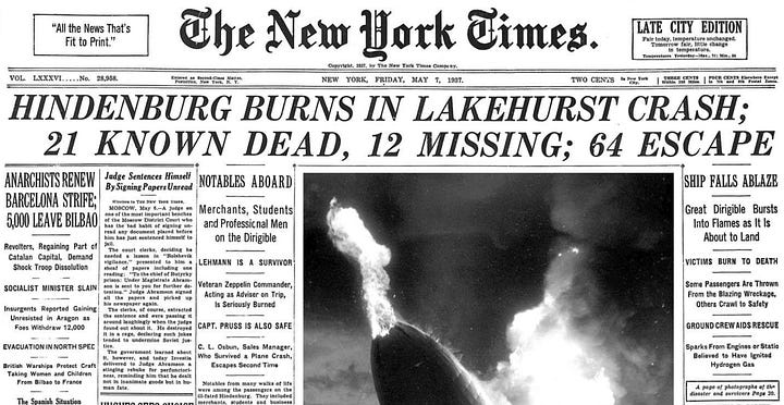 Why did we ever think that a giant balloon filled with 200,000 cubic metres of highly flammable hydrogen alongside hundreds of tonnes of fuel oil was a good way to move lots of people across oceans?