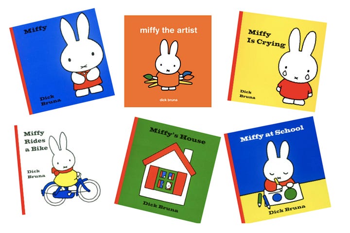 The stories are simple yet profound, often exploring themes of love, curiosity and grief through everyday adventures, making them relatable for children everywhere. And there’s a formula. Miffy books each contain 12 pages of story. Each page has one illustration and four lines of verse, the last word of the second line rhymes with the last of the fourth. They are written about things that children can understand, and situations they will face such as going to the hospital and going to school, and they always have a happy ending.