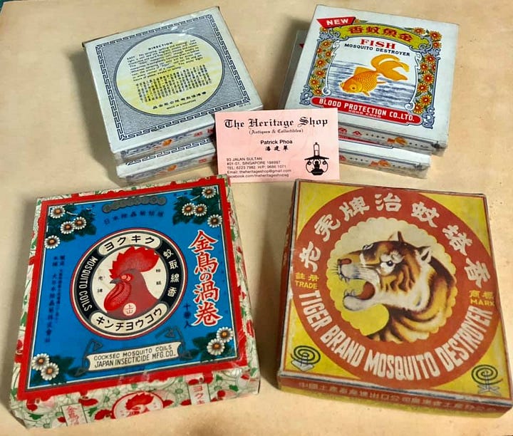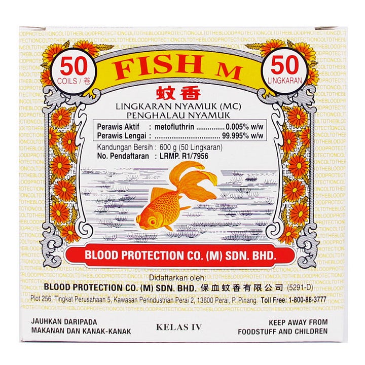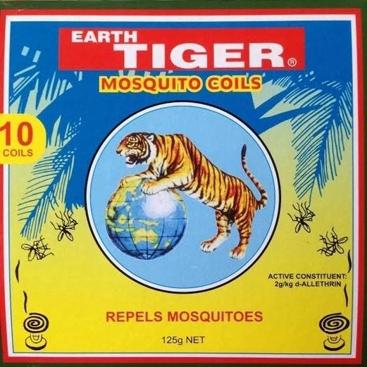 After World War II, Ueyama’s company, Dainihon Jochugiku Co. Ltd, now headquartered in Osaka, established joint venture companies in various countries, including China and Thailand, to produce mosquito repelling products based on local conditions; and that’s why you see other Asian brands like “White Crane”, “Pug Cat” and “Zebra” (China); “Tiger” (Malaysia); “Fish” (Hong Kong SAR) and Chinese Taiwan’s “Cock”.
