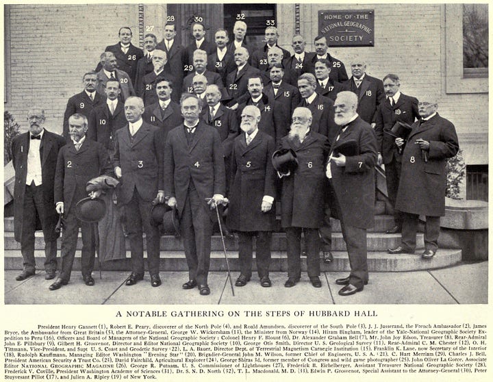 In 1898 Alexander Graham Bell, the inventor of the telephone, took the helm as Society President and was governed by a board of trustees whose members included distinguished educators, business executives, former government officials, explorers and conservationists – mostly older white men, with lots of facial hair, it has to be said.