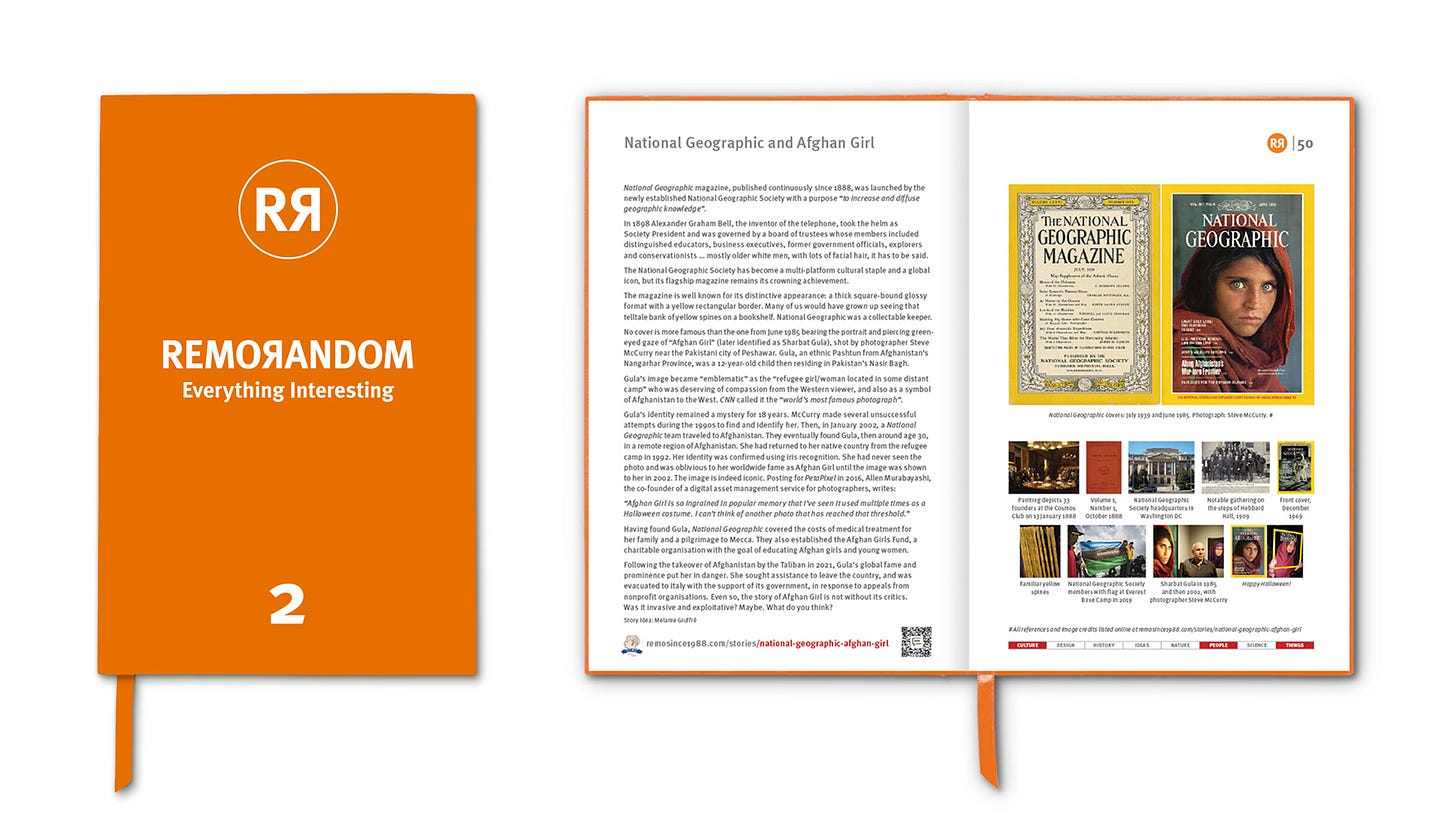 The magazine is well known for its distinctive appearance: a thick square-bound glossy format with a yellow rectangular border. Many of us would have grown up seeing that telltale bank of yellow spines on a bookshelf. National Geographic was a collectable keeper [Ed: … just like REMORANDOM aspires to be].