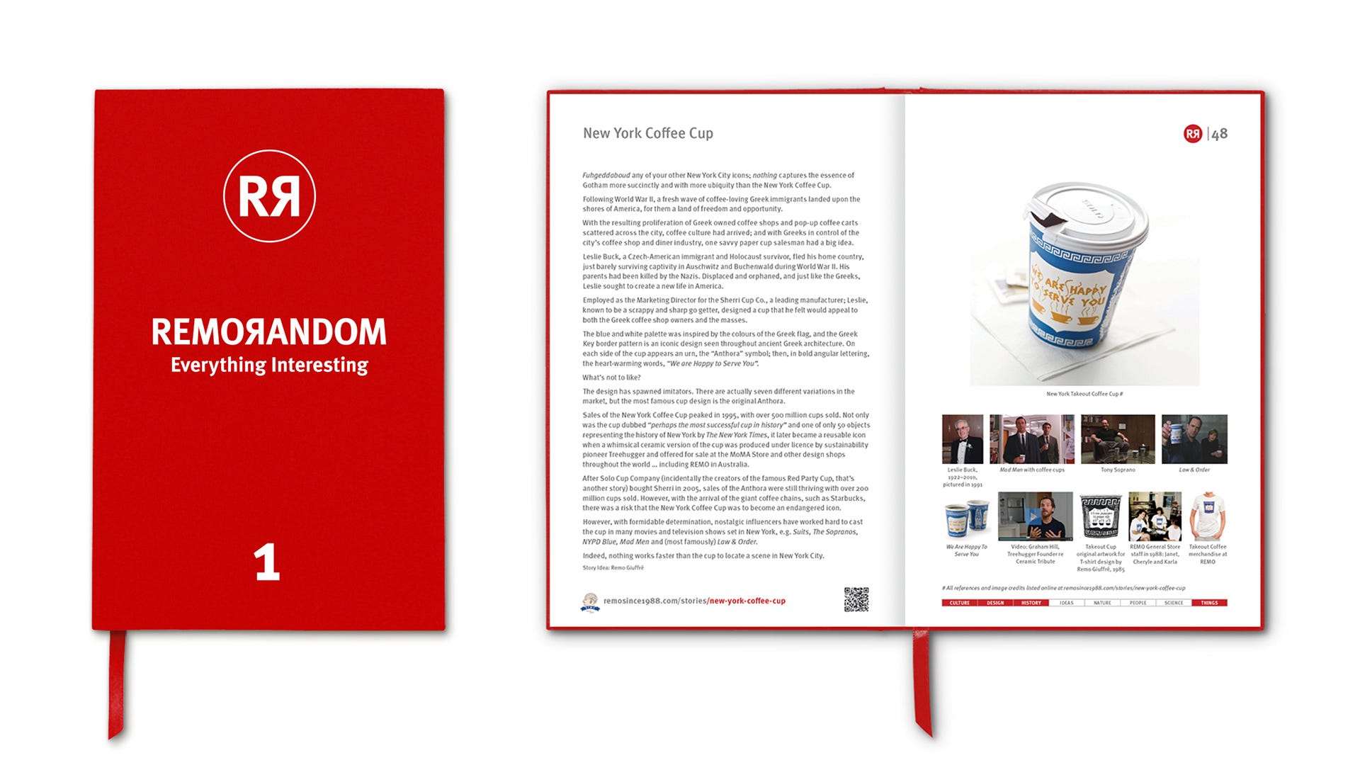 Sales of the New York Coffee Cup peaked in 1995, with over 500 million cups sold. Not only was the cup dubbed “perhaps the most successful cup in history” and one of only 50 objects representing the history of New York by The New York Times, it later became a reusable icon when a whimsical ceramic version of the cup was produced under licence by sustainability pioneer Treehugger and offered for sale at the MoMA Store and other design shops throughout the world – including REMO in Australia.