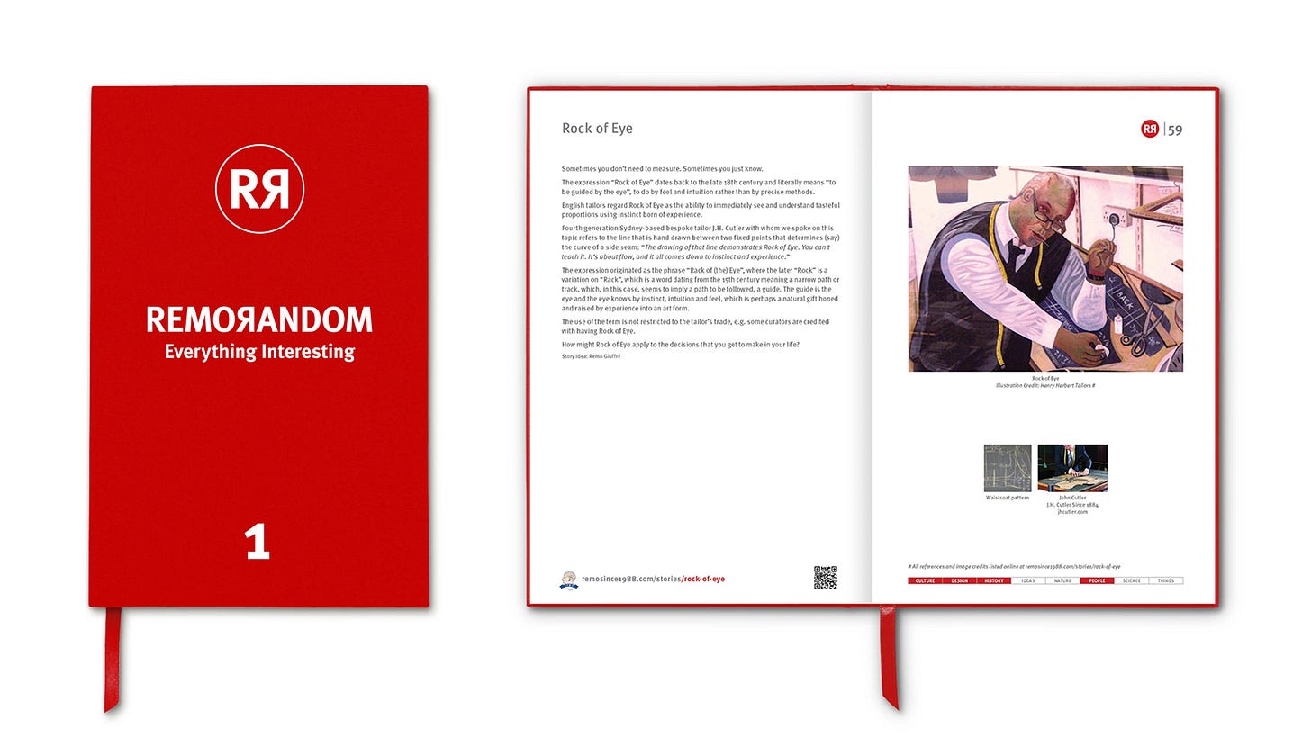 English tailors regard Rock of Eye as the ability to immediately see and understand tasteful proportions using instinct born of experience.