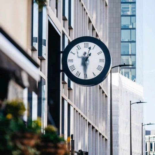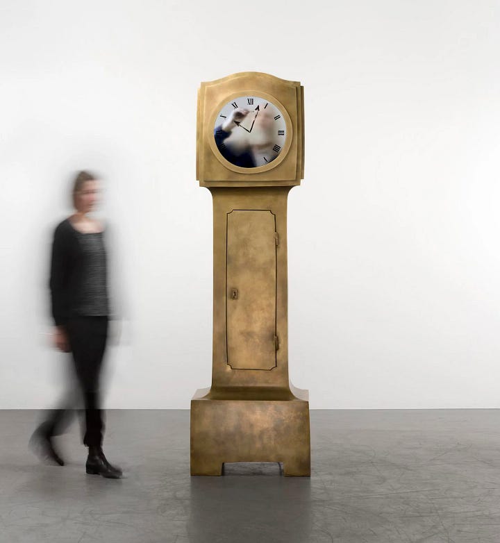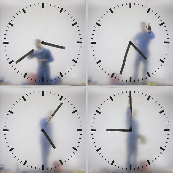 This “man” is actually a 12-hour-long video loop of an actor in a blue jumpsuit, filmed at the terminal by Baas himself. The man appears to be inside the clock, meticulously painting the minute and hour hands in real time. Each minute, he wipes away the old hand and carefully paints the new one, creating a captivating illusion of labor and precision. The result is a functional timepiece that is also a work of performance art, blending the boundaries of design, film and sculpture. Watch below or HERE.