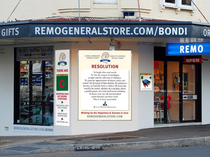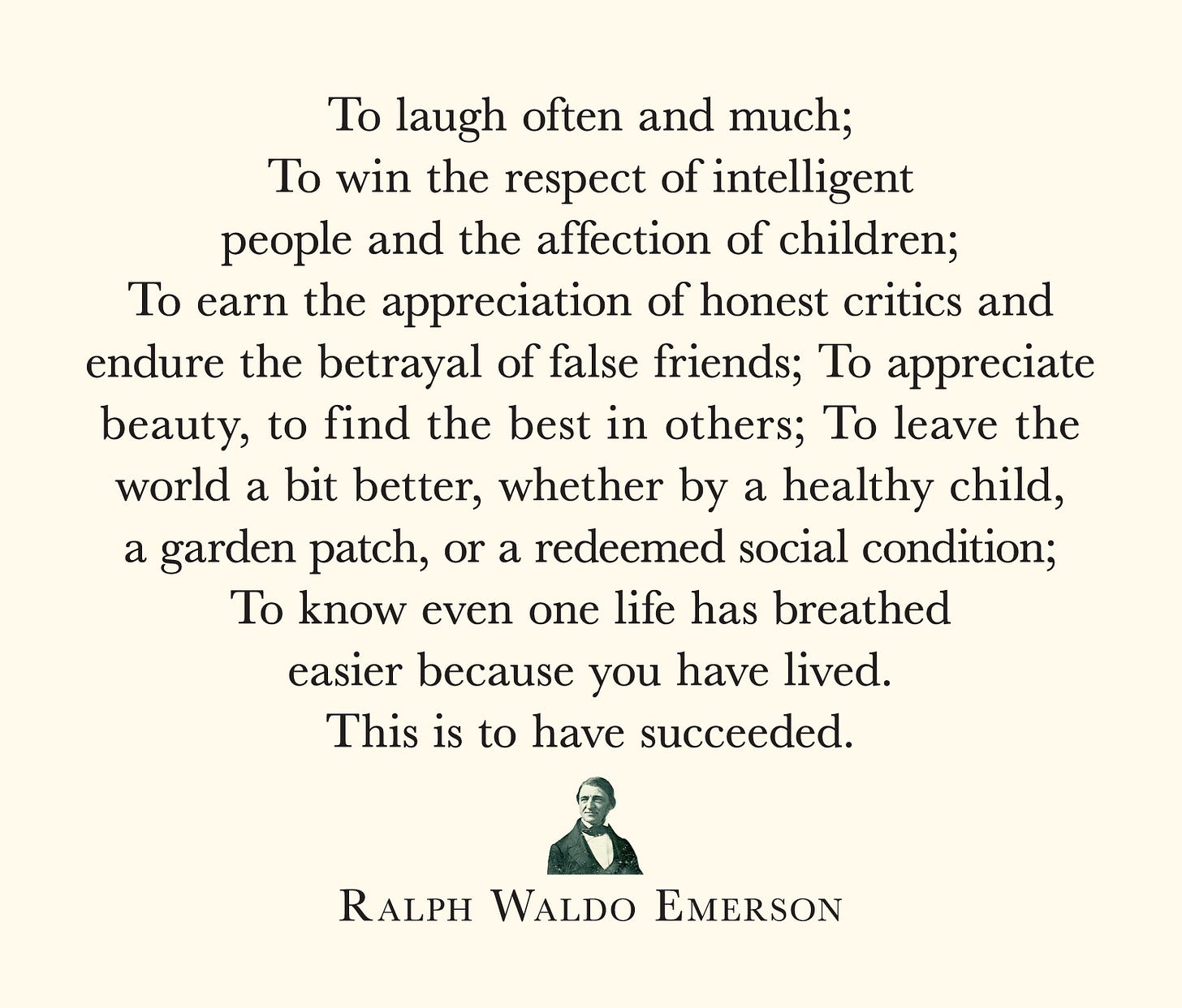 I first celebrated this quote at the tail end of 2009 by printing it as a large vinyl poster for a relatively-short-lived REMO store on the corner of Bondi Road and Imperial Avenue in Bondi. The quote continues to resonate and make me smile. I really like how it starts with the stuff about laughing “often and much”.