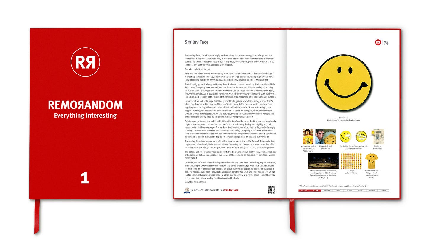 The smiley face, also known simply as the smiley, is a widely recognised ideogram that represents happiness and positivity. It became a symbol of the counterculture movement during the 1970s, representing the spirit of peace, love and happiness that was central to that era, and was often associated with hippies.