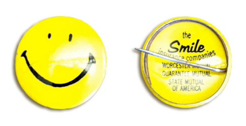 Then in 1963, graphic designer Harvey Ross Ball was commissioned by the State Mutual Life Assurance Company in Worcester, Massachusetts, to create a cheerful and eye-catching symbol to boost employee morale. [Ed: Harvey looks like he could use some life insurance.] He created the design in ten minutes and was paid US$45 (equivalent to US$472 in 2025). His rendition, with a bright yellow background, dark oval eyes, full smile, and creases at the sides of the mouth, was imprinted onto thousands of buttons.