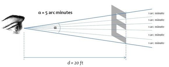 The original Snellen chart had large letters at the top, decreasing in size with each row. It was designed to be read at a standardised test distance, usually 6 metres (20 feet). The chart introduced a scoring system based on a fraction, such as 20/20 vision, meaning a person can read at 20 feet what a normal eye should be able to read at that distance.