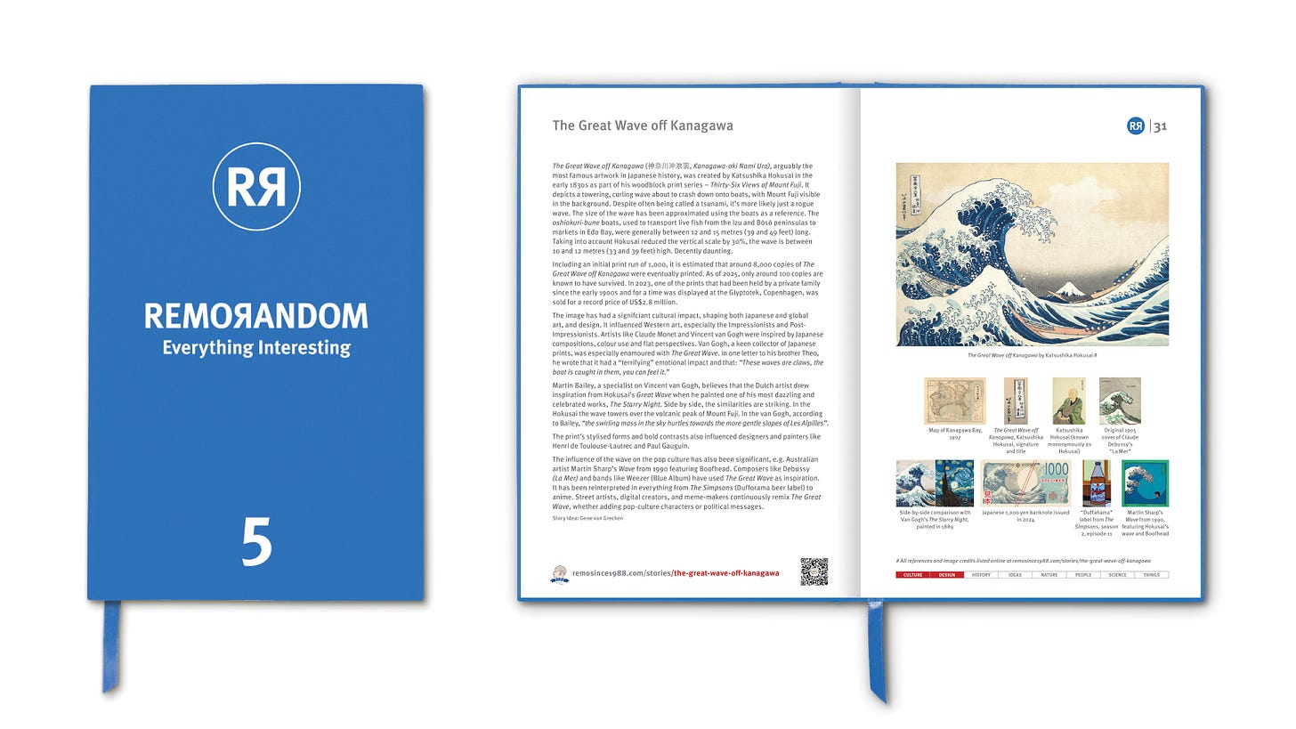 The image has had a signifciant cultural impact, shaping both Japanese and global art, and design. It influenced Western art, especially the Impressionists and Post-Impressionists. Artists like Claude Monet and Vincent van Gogh were inspired by Japanese compositions, colour use and flat perspectives. Van Gogh, a keen collector of Japanese prints, was especially enamoured with The Great Wave. In one letter to his brother Theo, he wrote that it had a “terrifying” emotional impact and that: “These waves are claws, the boat is caught in them, you can feel it.”
