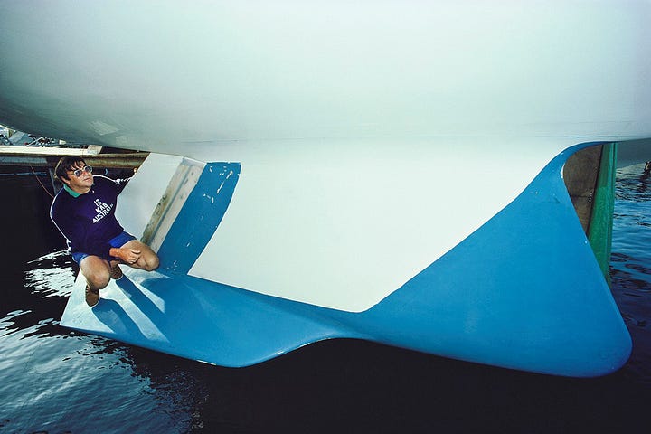 In May 1983, when the crew of Australia II arrived at the start of the cup in Newport, Rhode Island, the eyes of the media locked on the skirt drawn tightly around the keel. The design of the boat’s keel was a closely guarded secret, but its reputation had preceded it. Lexcen’s design featured a reduced waterline length and a winged keel which gave the boat a significant advantage in manoeuvrability and heeling moment (lower ballast centre of gravity). The sailing world was caught off guard and stunned.