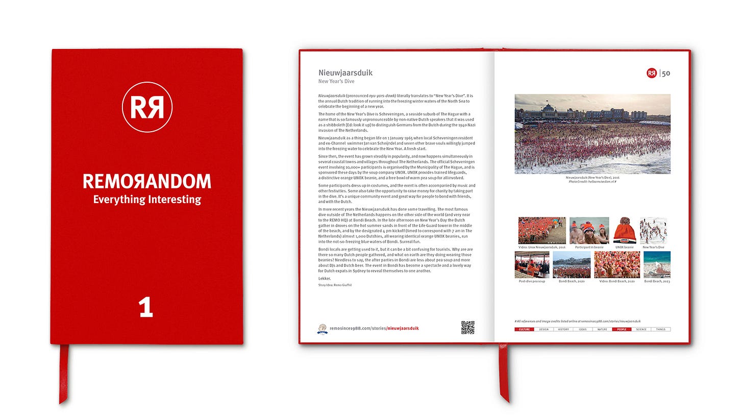 In REMORANDOM 1 you learned about Nieuwjaarsduik, a New Year’s Day tradition in the Netherlands whereby thousands of brave participants wearing orange beanies plunge into the icy cold waters of the North Sea [RR1: 50]. In REMORANDOM 2 we flagged a handful of other unusual new year’s traditions from around the world.