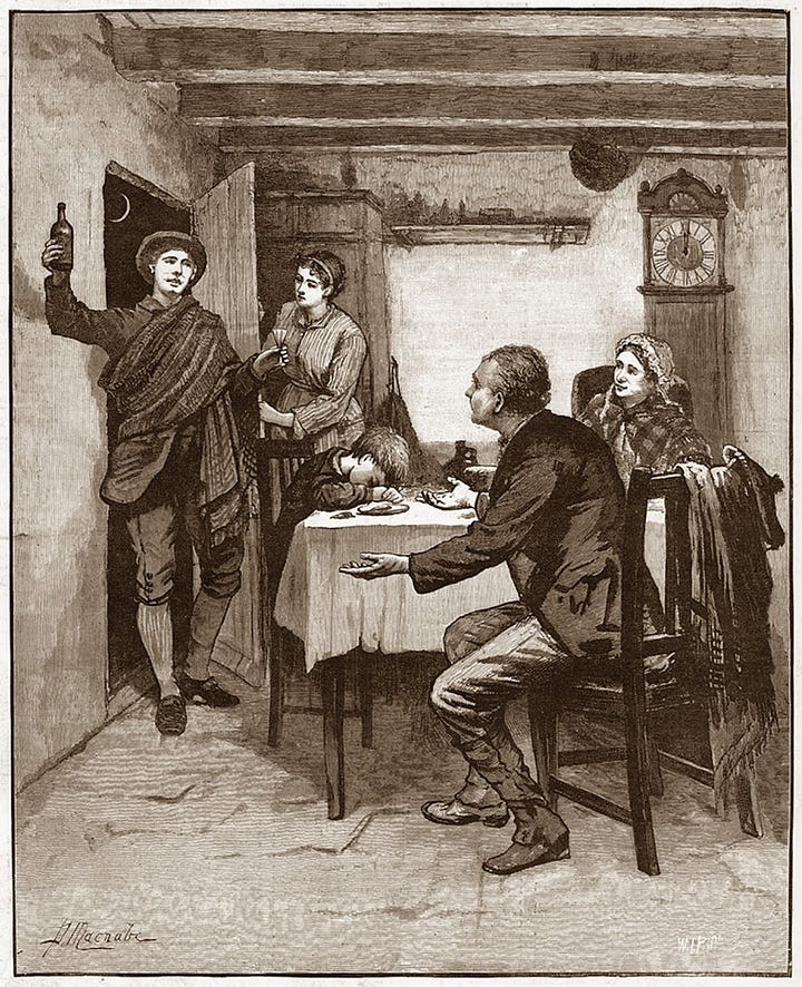 In Scotland, the first person to enter a home after the stroke of midnight is called the “firstfooter”. It’s considered good luck if this person is a tall, dark-haired man. They should come bearing gifts. These gifts can be coins, coal, bread, salt or a “wee dram” of whiskey.