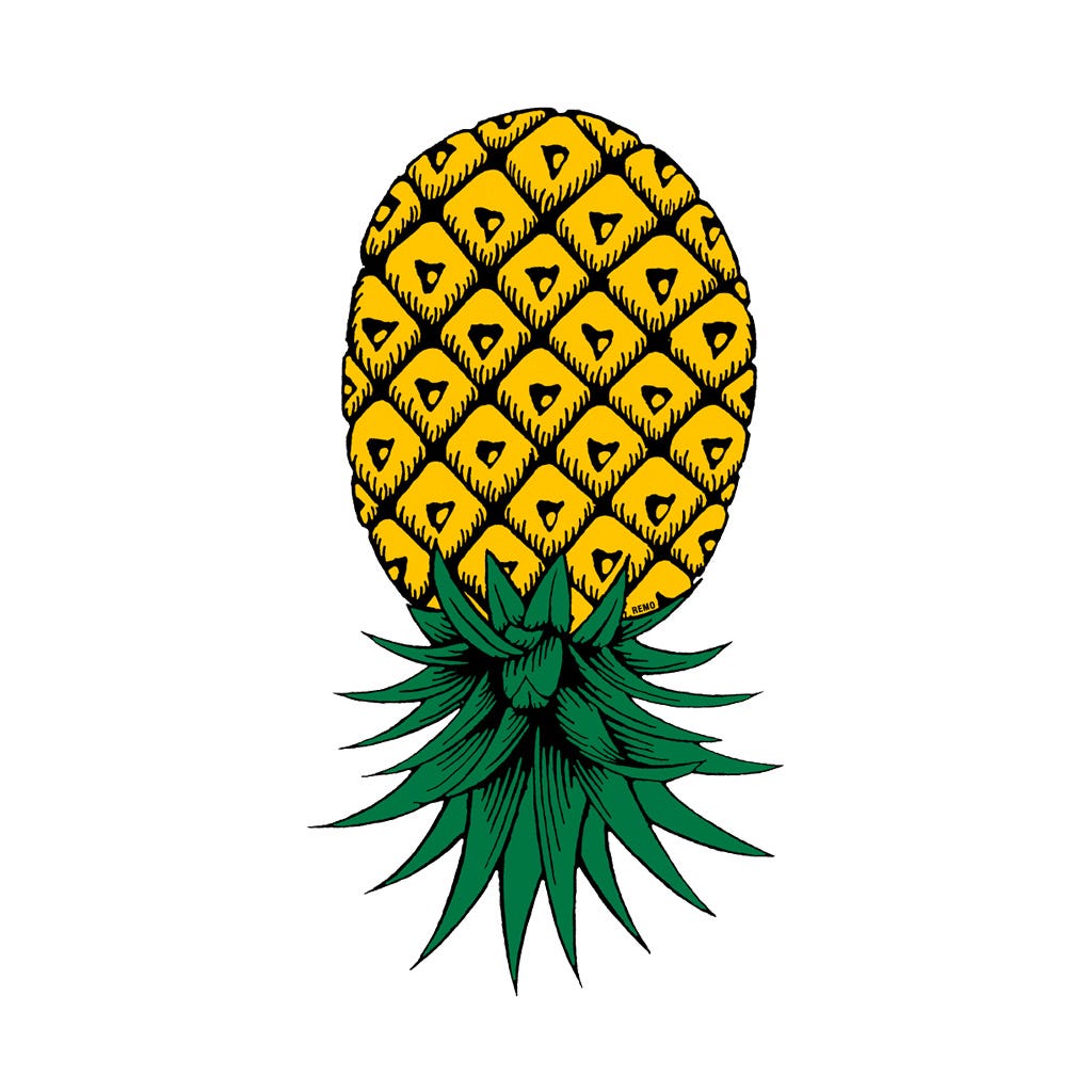 By 1990 the REMO General Store in Sydney was already well known for its diverse range of T-shirts designs, representing the unique talents of artists and thinkers from all over the world. That year Beth Bartholemew, a designer from Brooklyn submitted an idea for an upside down pineapple, and accompanied her artwork with the following musings: