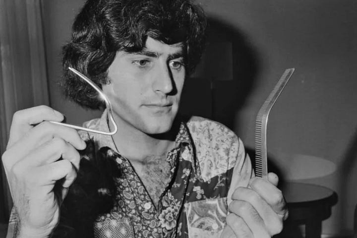 Uri Geller is one of the most famous and polarising figures associated with psychic phenomena. Born in 1946 in Tel Aviv, Geller shot to global fame in the early 1970s with television demonstrations of what he claimed were paranormal abilities. His most iconic feat – the one that became his calling card – was spoon-bending. Geller would hold an ordinary metal spoon lightly between his fingers, stroke it gently and declare that it was “becoming soft”. Moments later, before live audiences and TV cameras, the spoon would appear to bend, sometimes even snapping in two. For millions of viewers, this was the closest thing to witnessing real magic.
