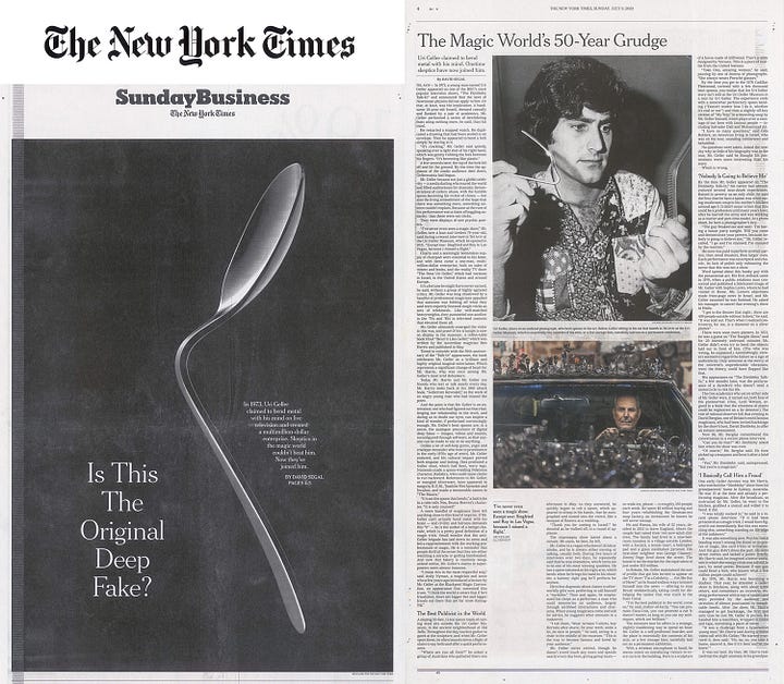 So, what do we make of it all? “Geller’s bent spoon demonstrations and deep fakes both create this conflict between what we think is possible and what we’re seeing,” says Alice Pailhès, an author of The Psychology of Magic, quoted in a 2023 New York Times piece by David Segal. She adds: “Both elicit strong emotional responses – confusion, delight, distress, maybe even paranoia.” If nothing else, Geller has been a global catalyst for our collective curiosity about the paranormal.